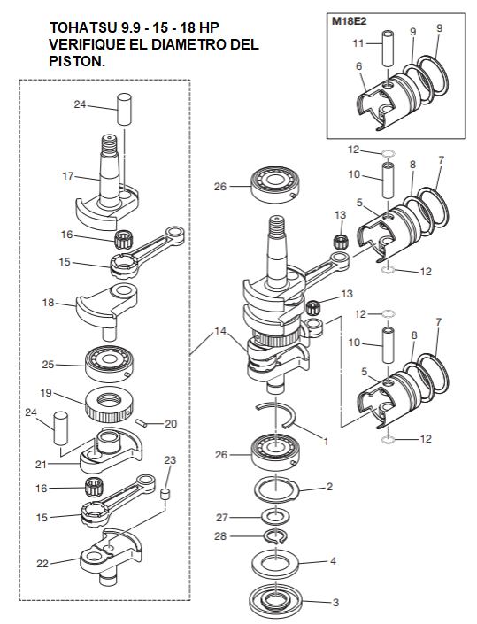 DIAGRAMA PARTES CIGUEÑAL TOHATSU 9.9 - 15 - 18 HP