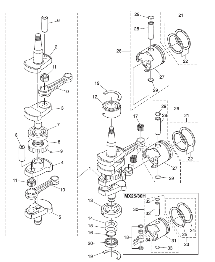 PARTES DE CIGUEÑAL TOHATSU 25-30HP