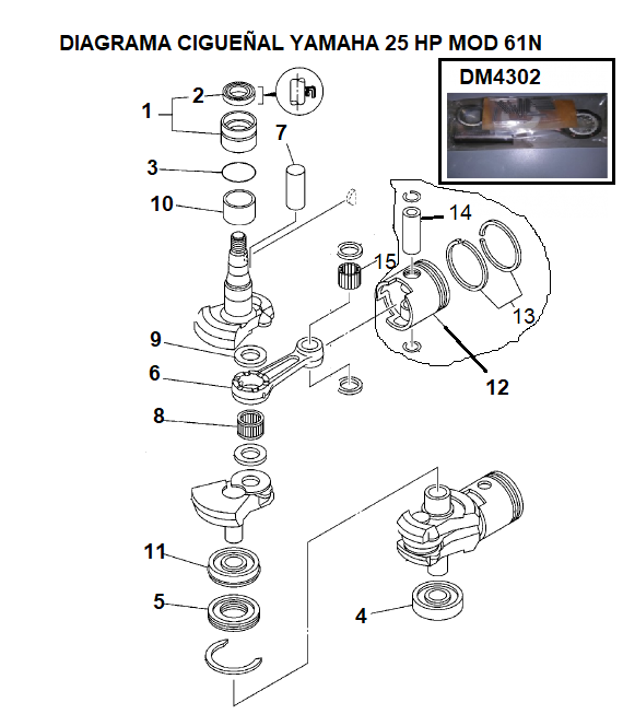 - Código: DIAGRAMA CIGUEÑAL YAMAHA 25 HP MOD 61N