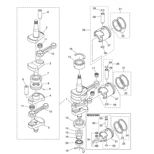 PARTES DE CIGUEÑAL TOHATSU 25-30HP