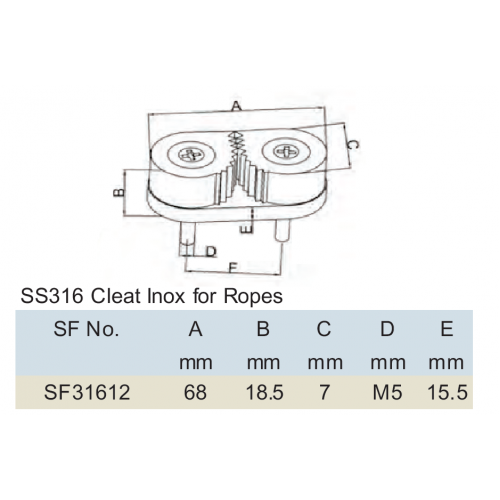 CORNAMUSA AJUSTABLE PARA CUERDA ACERO INOXIDABLE 316