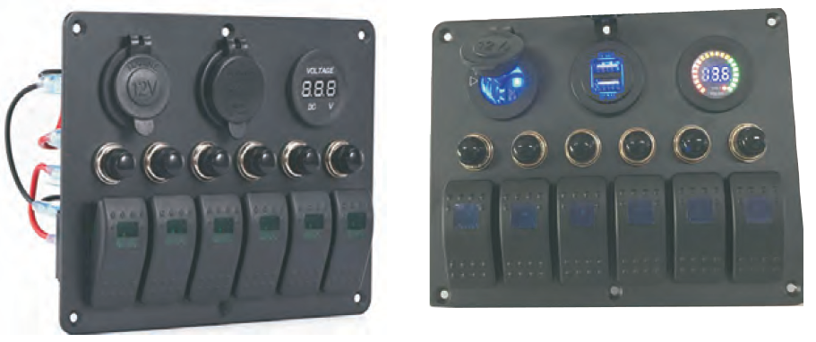 Panel de 6 switches tipo rocket con cortacorrientes de 5 amp (3 pcs.),