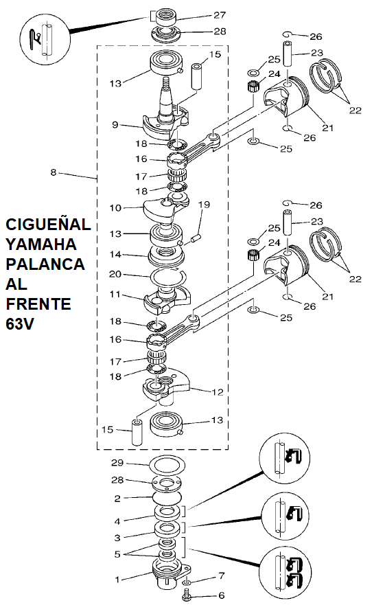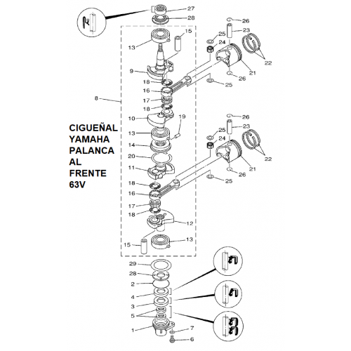 Código: YAMAHA 15 PALANCA AL FRENTE CIGUEÑAL 63V